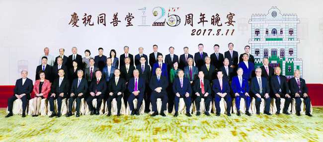 二○一七年八月十一日,同善堂第九十七屆值理會成員於慶祝同善堂一百二十五周年晚宴上合照。 |