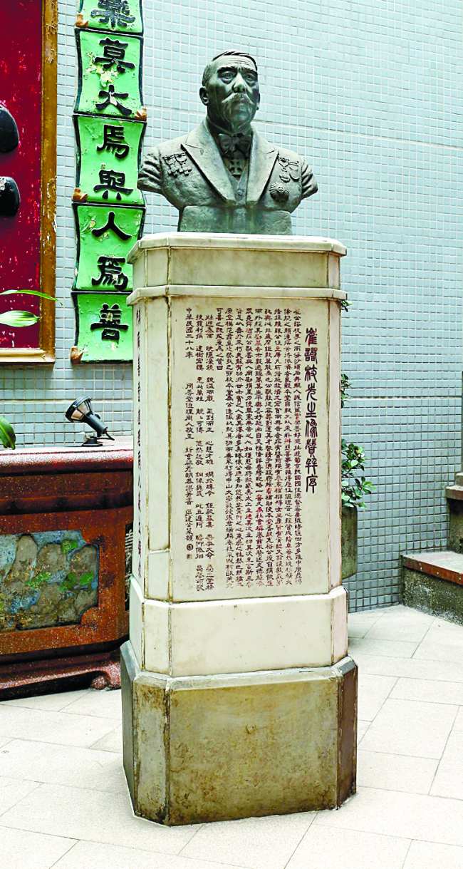 崔諾枝熱心公益,樂於行善,對同善堂貢獻良多。圖為同善堂值理會於一九三九年為崔諾枝設立的銅像,現銅像佇立於同善堂天井處。 |