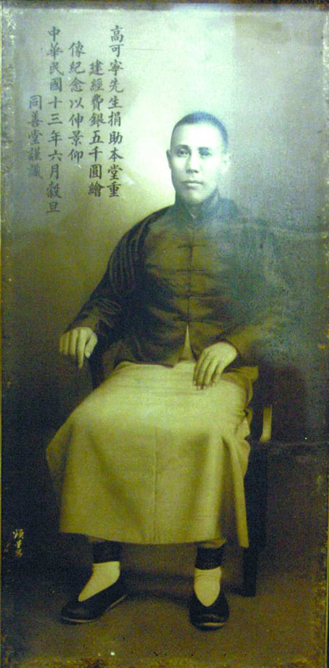高可寧為善最樂,功德無量。為表彰其對同善堂的貢獻,同善堂值理會於一九三九年為高可寧設立銅像,現銅像佇立於同善堂天井處。 |