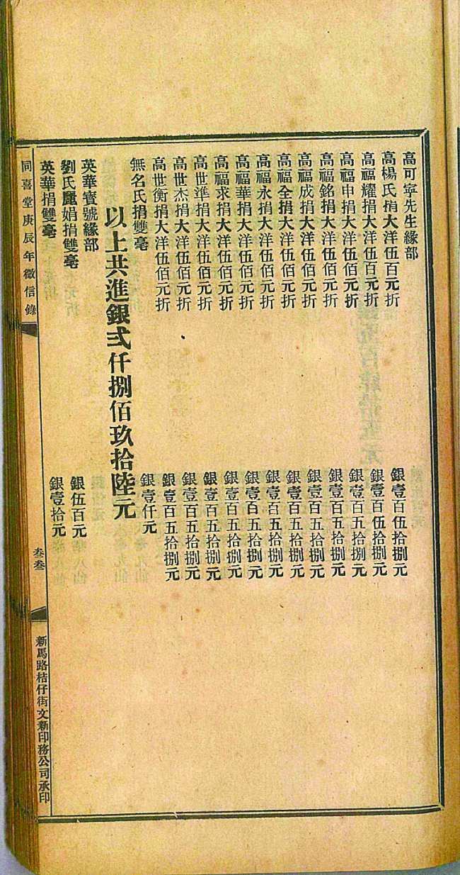 一八九二年善信樂助倡建同善堂經費芳名 |