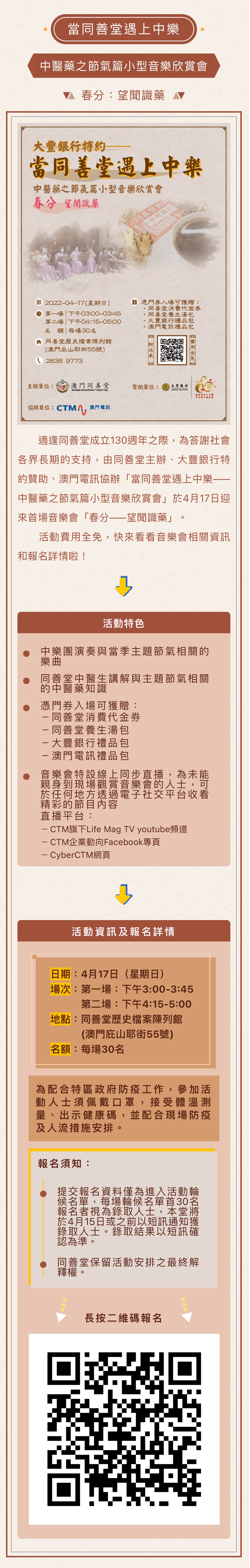 【活動消息】大豐銀行特約「當同善堂遇上中樂—中醫藥之節氣篇小型音樂欣賞會」—春分:望聞識藥