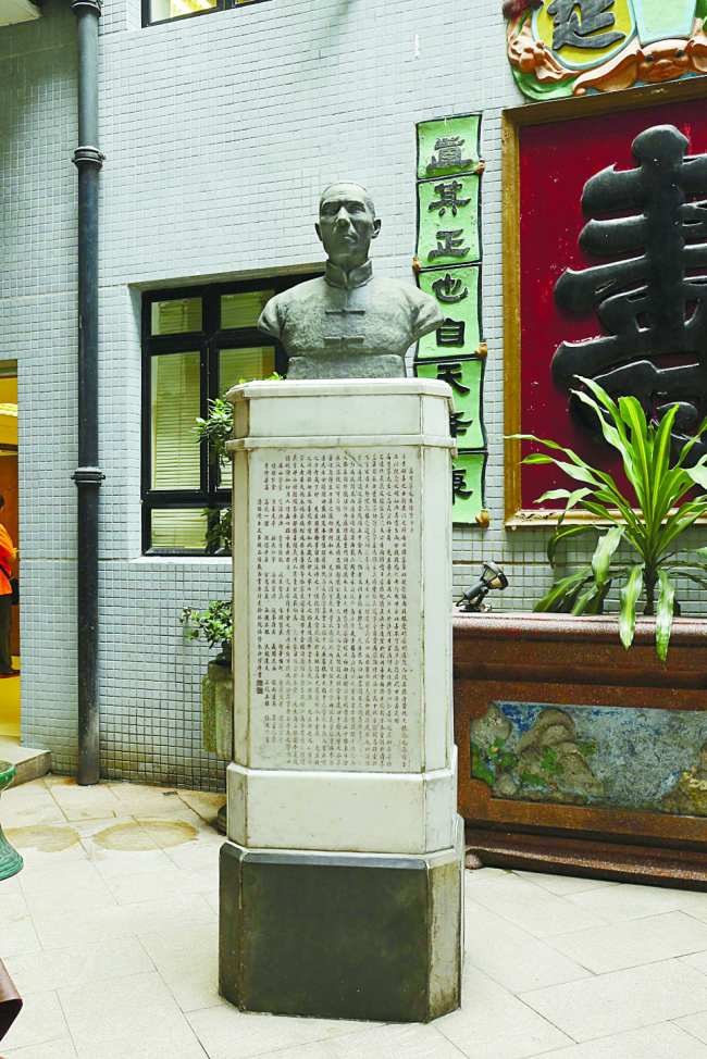 崔諾枝熱心公益,樂於行善,對同善堂貢獻良多。圖為同善堂值理會於一九三九年為崔諾枝設立的銅像,現銅像佇立於同善堂天井處。 |