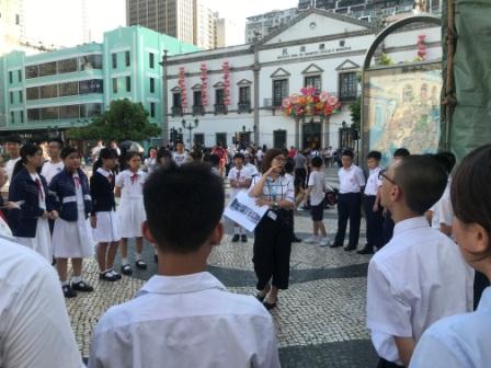 「愛國愛澳」系列——認識鄉土歷史文化情懷篇——齊走慈善路 為使本堂中學生認識本澳歷史與本堂服務發展歷史,9月20日及21日本館與同善堂中學的學生一同到議事亭前地、三街會館、同善堂及康公廟,實地了解本澳社會發展變遷與本堂發展變遷史。