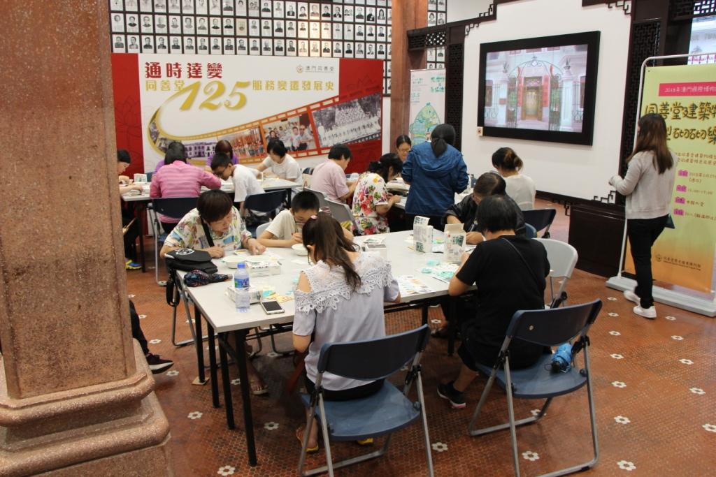 5月13日(星期日)14:00-17:00澳門國際博物館日嘉年華於氹仔龍環葡韻舉行,本館當日於會場舉辦「同善堂粒粒黏土工作坊」,讓大眾創作本堂標誌性建築物之一 「同善堂藥局」的粒狀黏土模型。工作坊參加者眾,既有遊客參與,亦有本地學生及親子家庭參加,反應熱烈。