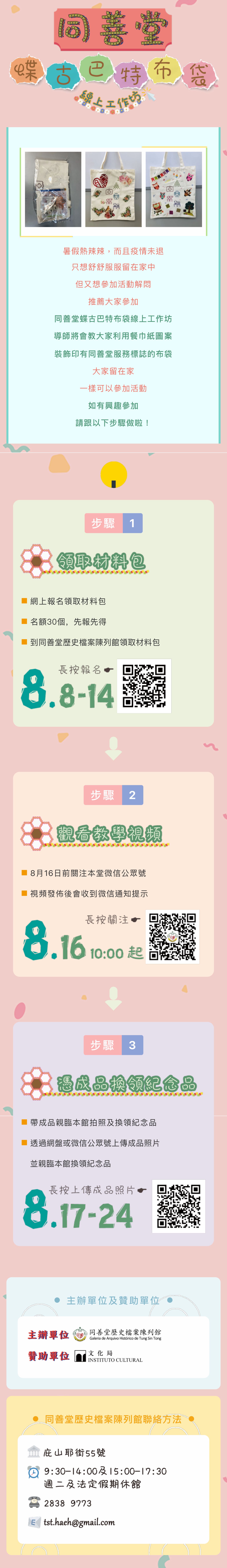 【最新消息】同善堂蝶古巴特布袋工作坊
