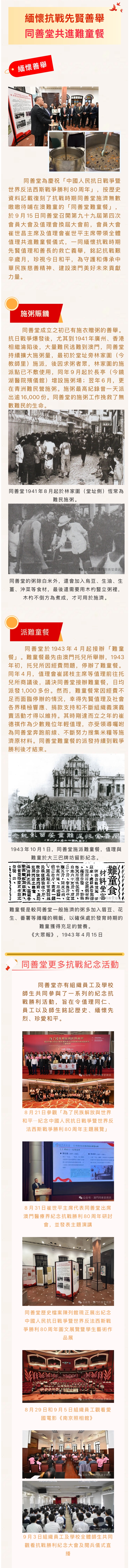 緬懷抗戰先賢善舉 同善堂共進難童餐